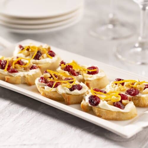 Made with a base of velvety mascarpone, topped with dried cranberries infused with the warm citrus notes of Cointreau, and a touch of vibrant orange zest, these crostini are a little taste of the holidays in every bite.