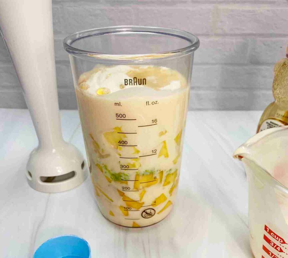 - Insert the blender (if using an immersion blender) or place the cover on top and blend on high speed until the mixture is smooth.